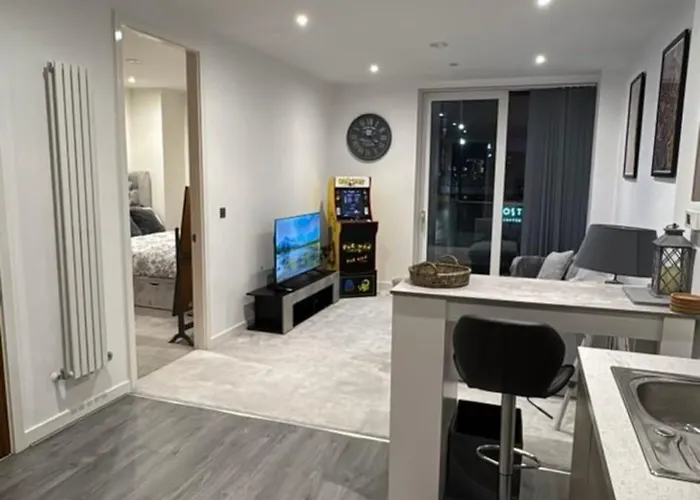 Niché dans le quartier "Salford" à Manchester, Luxury Modern Balcony Apartment Manchester propose un hébergement à 3 km d'un lieu d'intérêt culturel tel que le Musée des Sciences et de l'Industrie.
